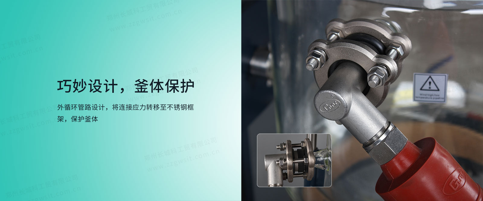 ● 夾套進(jìn)、出液口連接不銹鋼保溫軟管,減少進(jìn)出液口應(yīng)力。